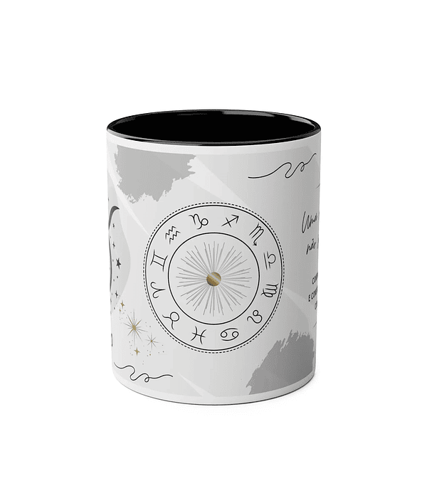 Esta caneca foi pensada para ti: traz o símbolo do Touro e a frase "Uma raiz forte não se abala. Confia no teu ritmo e constrói o teu império com paciência", para honrares a tua resiliência.